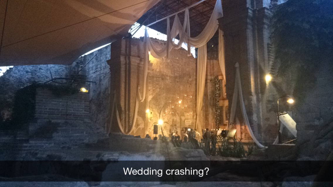 Back in Antigua at our resort, we all rested until the evening reception. Like the wedding, our area was all candle lit. I thought it was a bit weird though that the servers were dressed as monks. Afterward, everyone broke into smaller groups for dinner. It’s interesting, because some of the restaurants have armed guards standing outside and some don’t. I shared a great filet mignon with one of my co-workers and since it was someone’s birthday, we had a round of tequila shots (so good!)