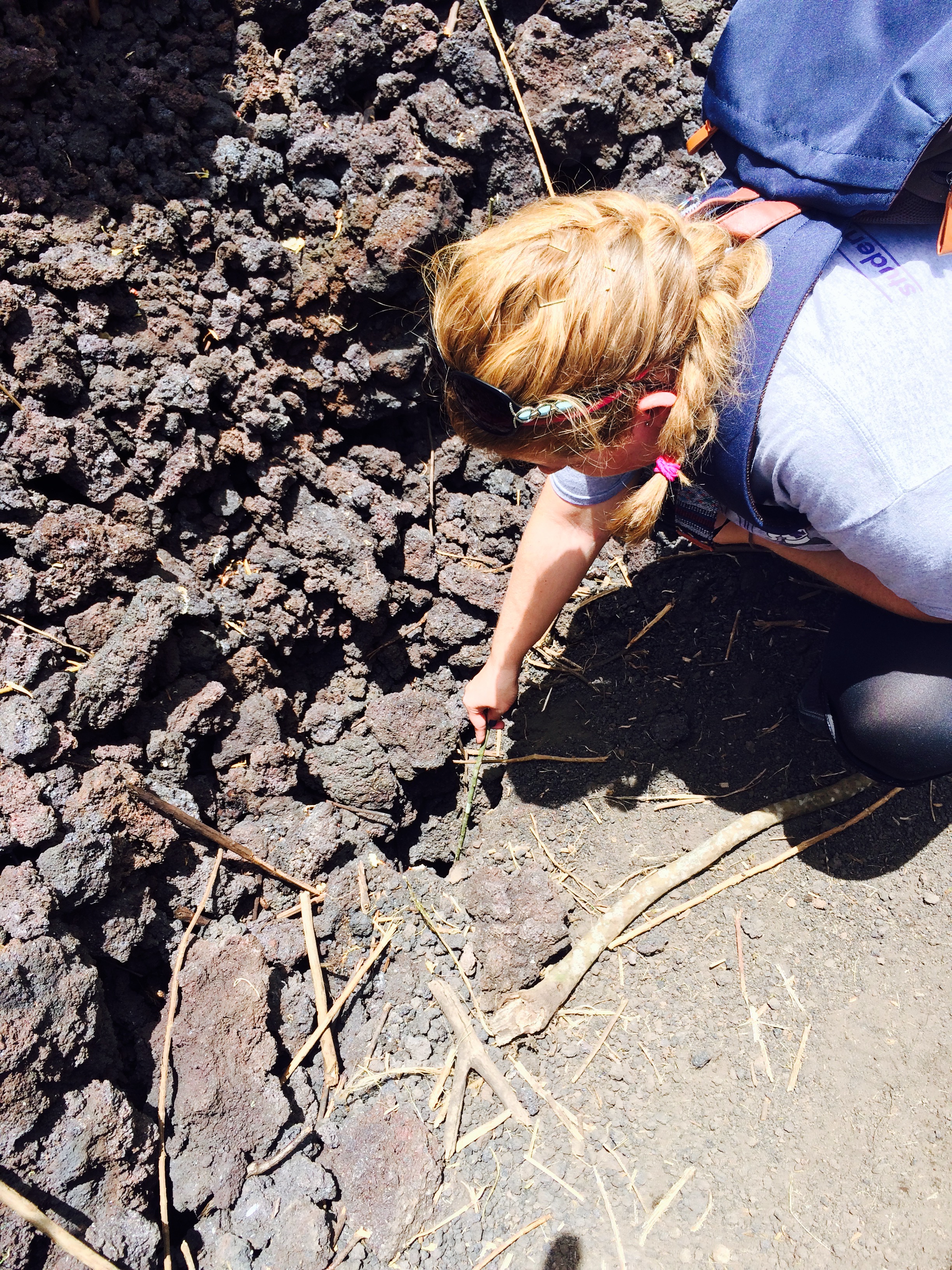The highest point that you are allowed to hike is at 75,000 ft., up to the start of what they call the lava fields. Last year in 2014, was the last time that the volcano had a really big flow/explosion (from what I understood.) The hike took us down into the fields, from where we had peaked and that by far the hardest part because the ash on the ground was very similar to sand (think running on the beach). I think I slipped and land on my behind at least three times.