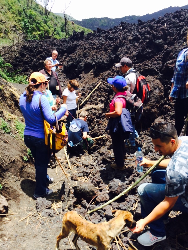 Because we have so many people coming in from around the world, those who got here on Saturday, an extra full day to enjoy. About 30 of us chose to go on a full day hike up the Volcan de Pacaya. This volcano is consistently active, but similar to the volcanos in Hawaii, so it doesn’t “explode” that often, just consistently steams and flows. It was an amazing experience. It took about an hour an a half to drive to where we started the hike. With a little ginger Dramamine, I did much better on this drive. The drive took us through a lot of Guatemala City. We’re told about 2% of the country has most of wealth so there is a lot of poverty. It definitely makes you take a step back for a moment. A couple of things I observed and information from the tour guide:
