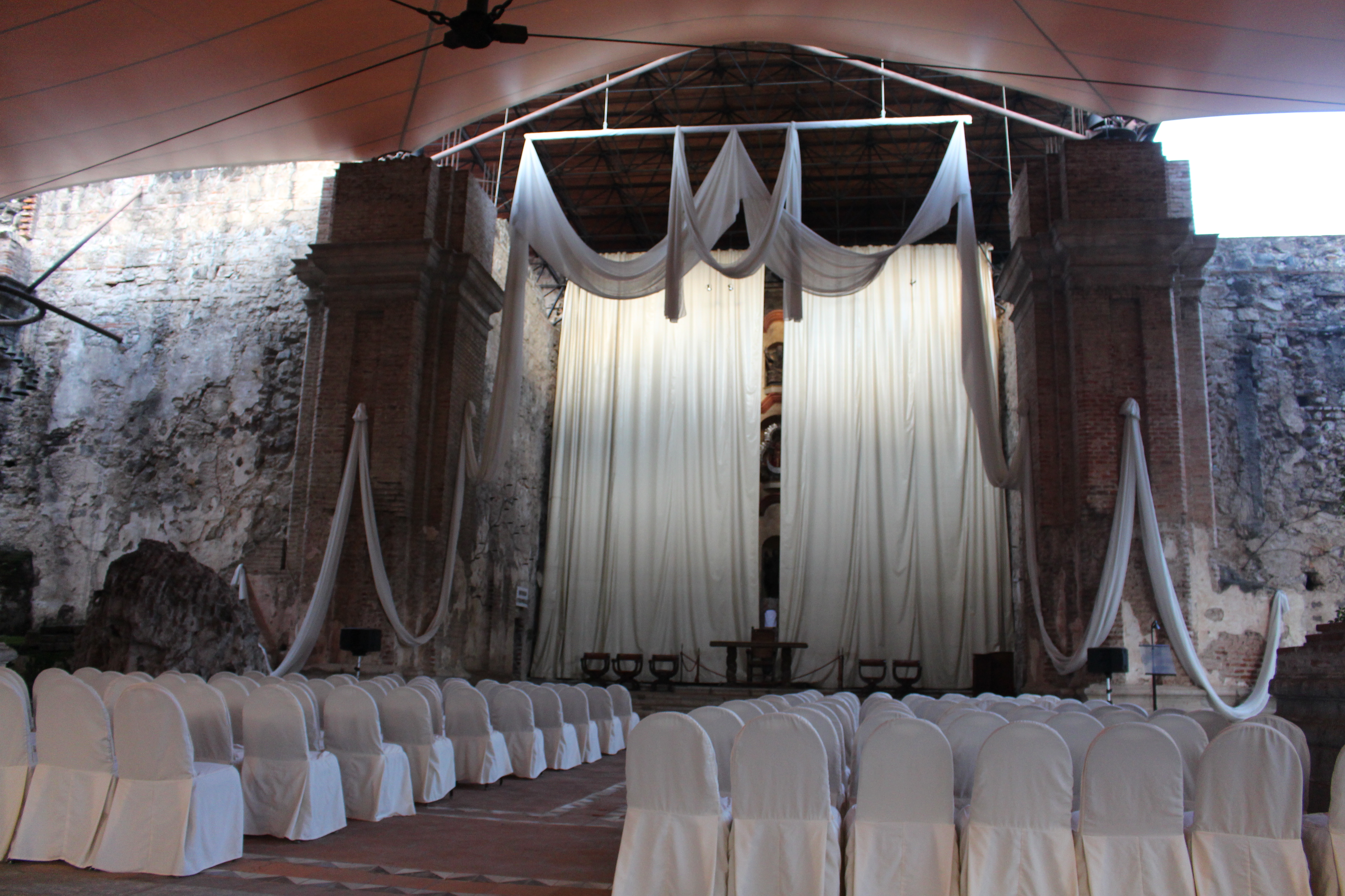 -Our trip was during Guatemala’s wet season, so the rain came in almost every afternoon, but that also meant it was a bit cooler there, probably averaging a high of 80 degrees or so each day. Where the meeting was held was across a large courtyard from the entrance and the restrooms… so while it was raining, there was a huge umbrella that they used to get us across.