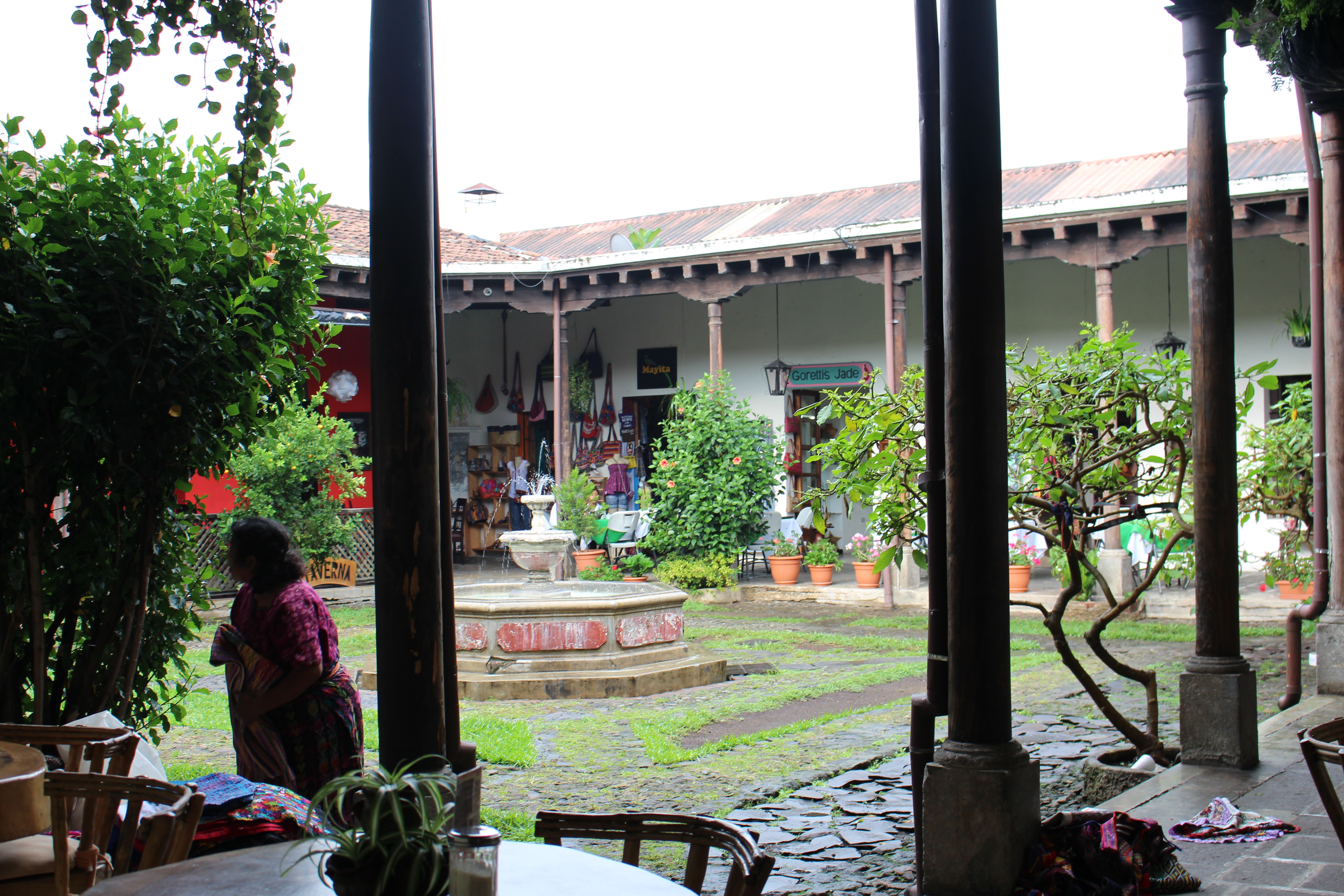 Antigua has a very simple, colonial feel, with lots of colors and textures. My co-workers gave me a hard time because I wanted to take pictures of everything – walls, floors, doors, windows – it was all so beautiful. I included a few of those pictures today, but the rest I will share tomorrow in my picture blog post wrap up. I’ll also mention now that it rained off and on all afternoon. I was the only in my group who didn’t have a good rain jacket. I own a few of those waterproof shell jackets that are popular in college but I figured that would be too heavy for the weather, so I didn’t bring one. Normally I wouldn’t have minded the rain, but I had my camera with me, so out came the poncho. There is a picture, but its on someone else’s phone.