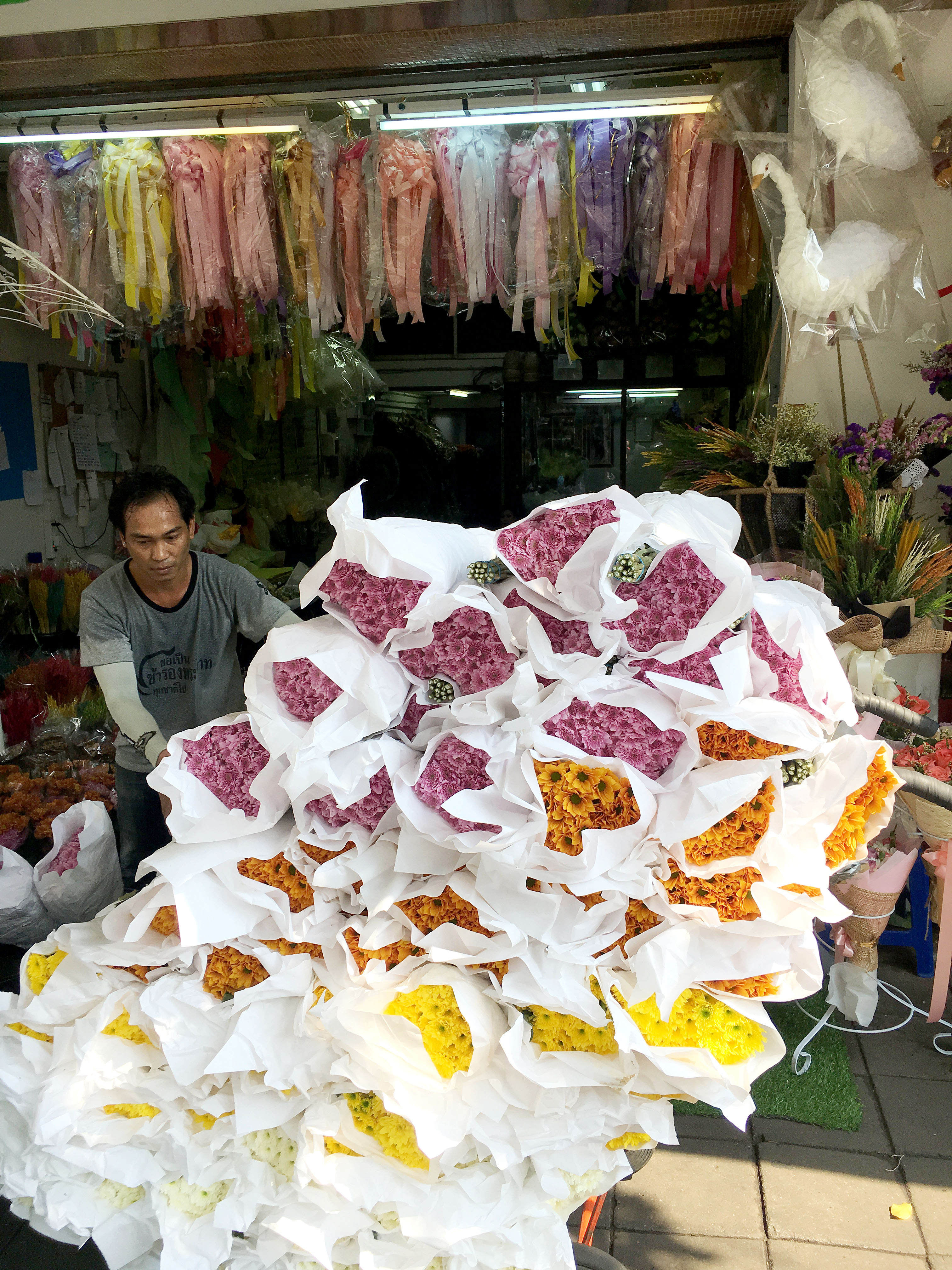 My Grammy started her flower shop, Cottage Flowers, 28 years ago, and has since passed the business on to my mom. I have always said that growing up in a flower shop made for a pretty interesting childhood and really it is the main place that I call home. So when I read about Bangkok’s 24-hour flower market I knew that had to be on our must-see list.