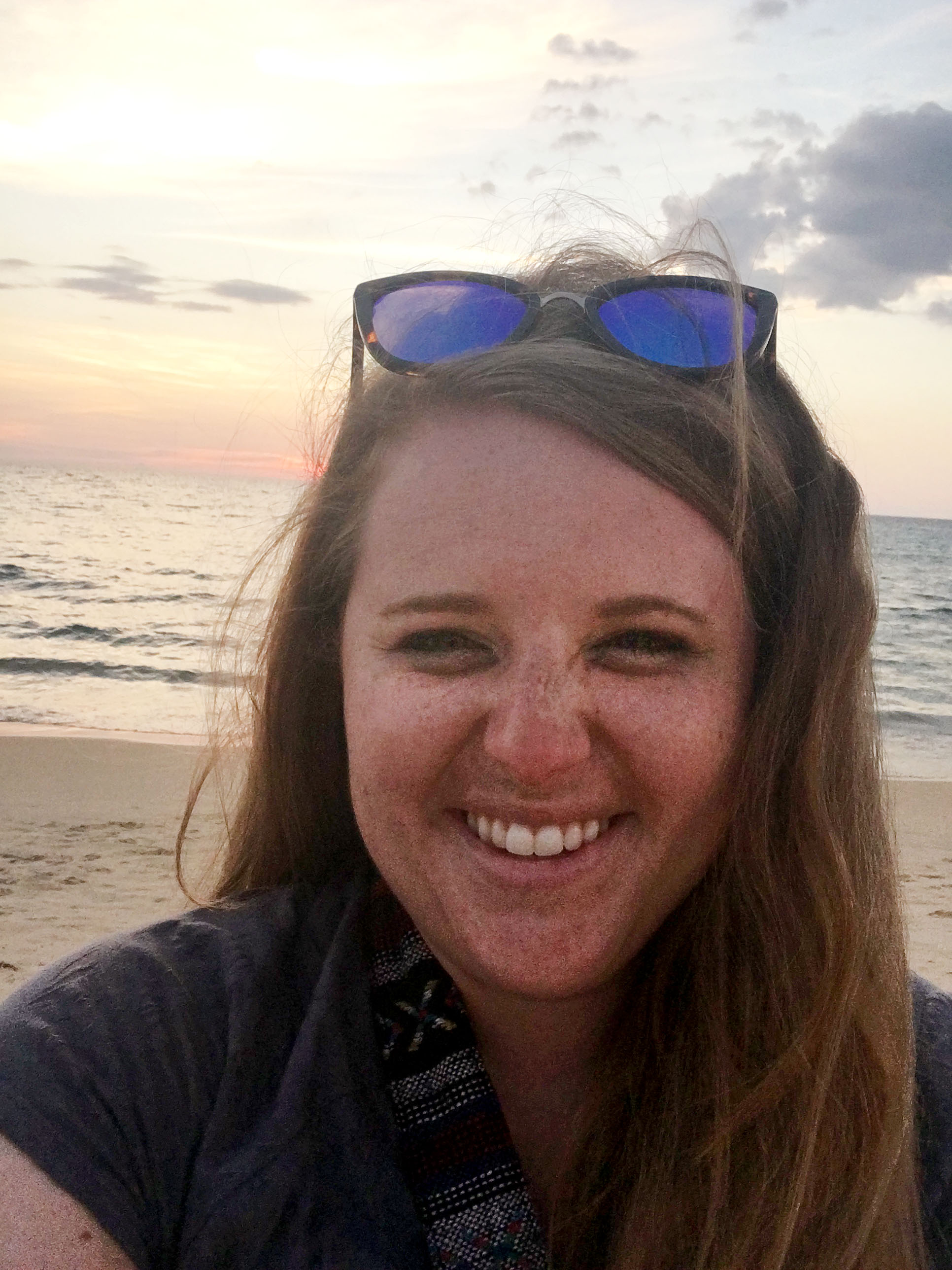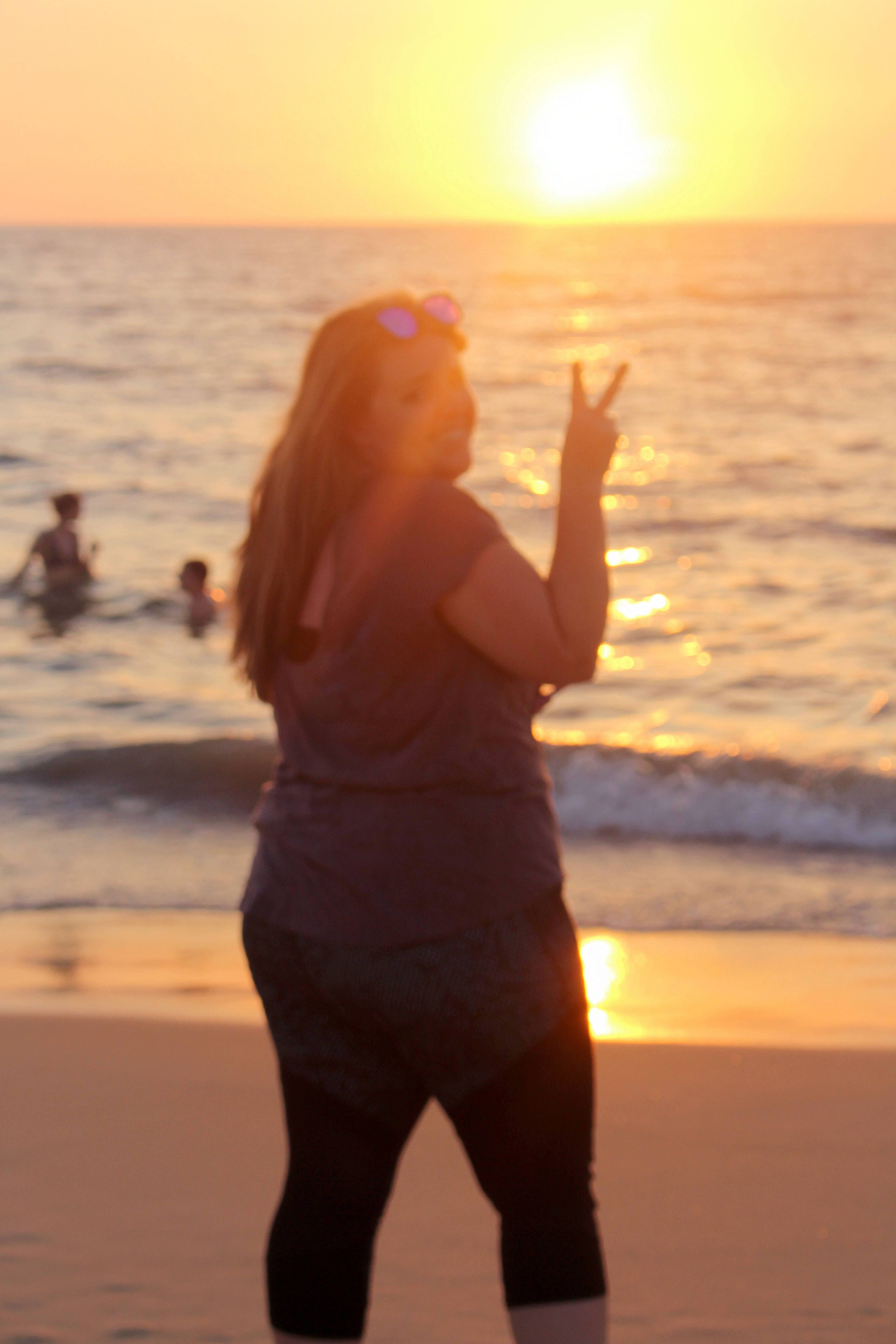 While I was relaxing on the sand for a bit, a young woman around my age came up to me with a DSLR camera of her own and asked if I would take a few pictures of her. She didn’t speak very good English, but I learned that she was visiting Thailand from Indonesia. Once I took her picture, she immediately reached for my camera and insisted on doing the same because I had “sunset colored hair.” She also insisted that I would look like I was having more fun if I threw up a peace sign 🙂