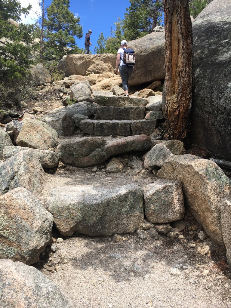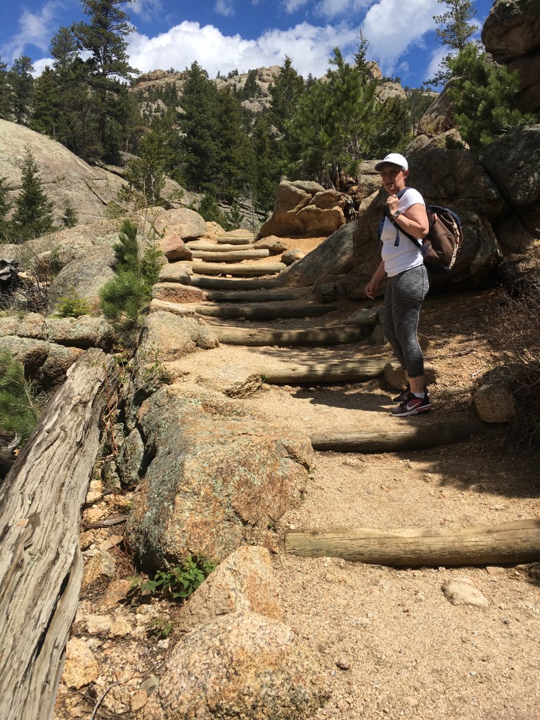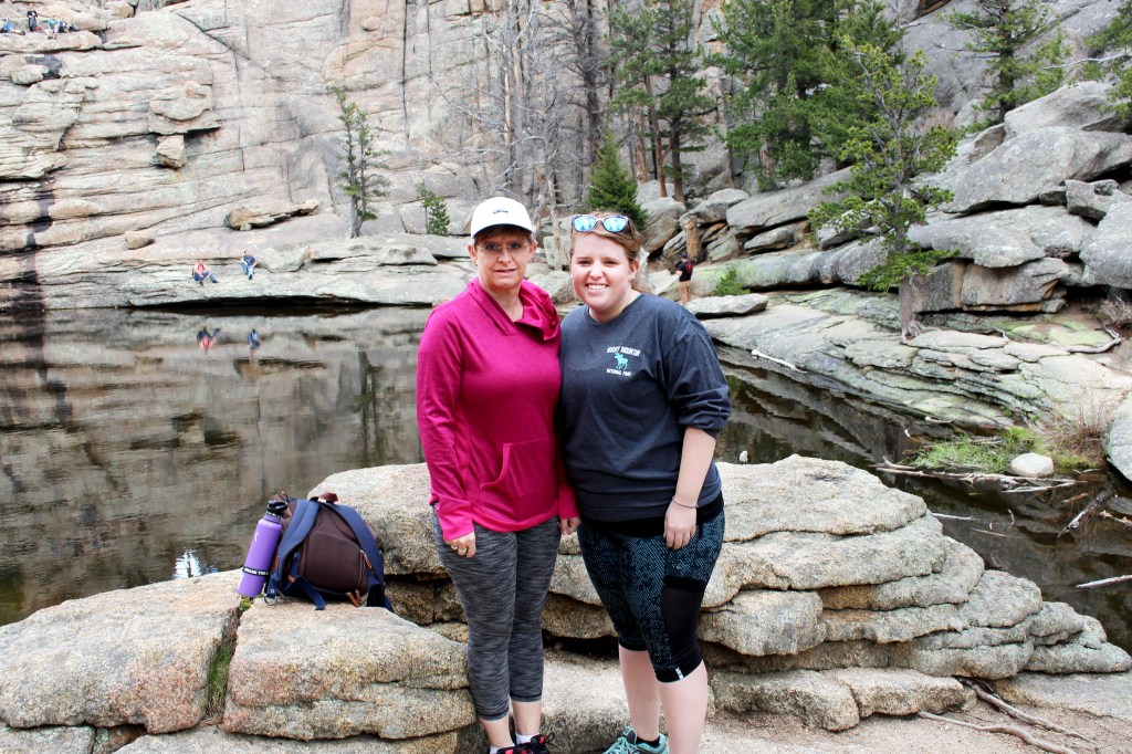 On our first full day after the conference we hiked up to Gem Lake. A few of my co-workers did the hike earlier in the week and mentioned that even though the distance was pretty short, that the hike itself should not be underestimated. The walk from the hotel to the trail head was 1.7 miles and the hike itself was also 1.7 miles. The altitude was definitely a bit a challenge from time to time, even on the walk up to the trail head but after a while we both felt a bit more leveled out. The trail wasn’t too difficult to maneuver until the last quarter mile or so where it got more rocky. But it was all still a bit steeper and slower than we first thought. It wasn’t until AFTER the hike that we learned that the 1.7 miles climbs 1,000 ft, so that explained a lot. But it was so much fun to enjoy the views, chat and just spend that time with my mom.