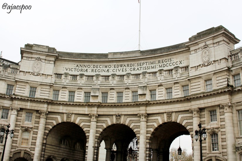 Admiralty Arch which marks the beginning of “The Mall” which is the road way that leads up to Buckingham Palace.