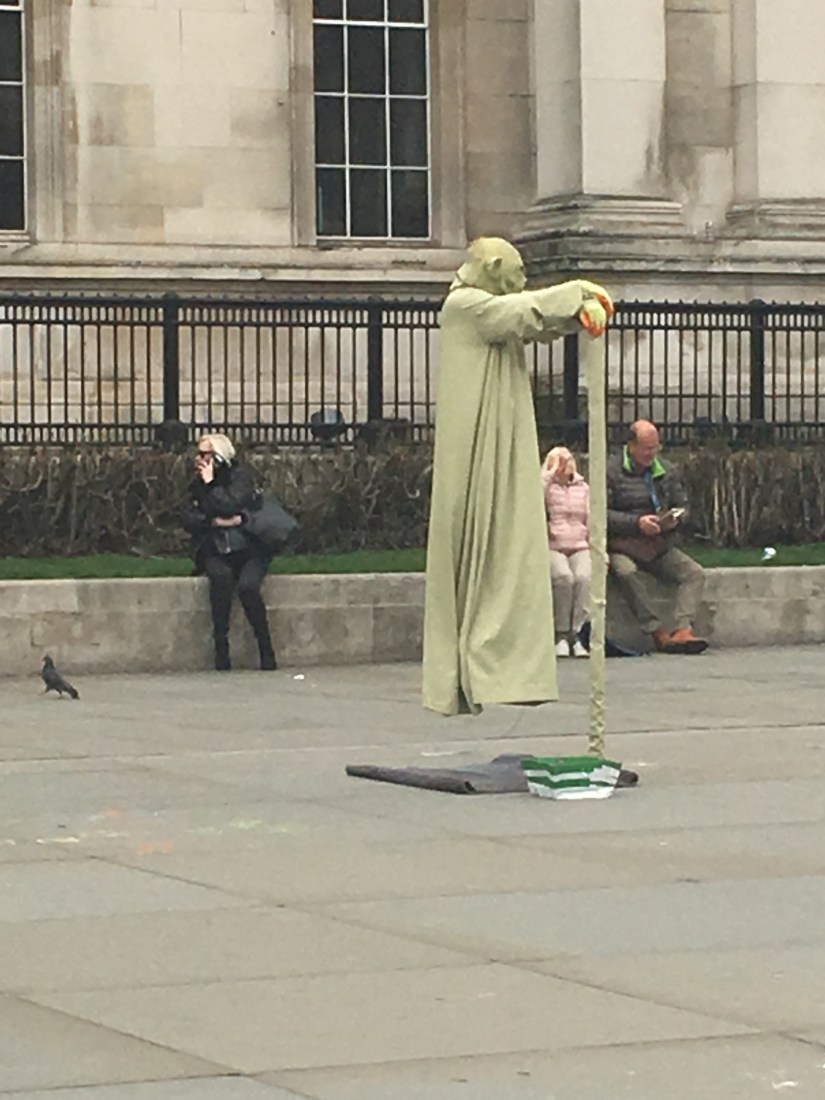 Street acts always creep me out, and this one did too, but I was also fascinated. What is their secret?! Is that an actual person standing on a platform that is anchored through the sleeve? Or is it a remote control of some sort?