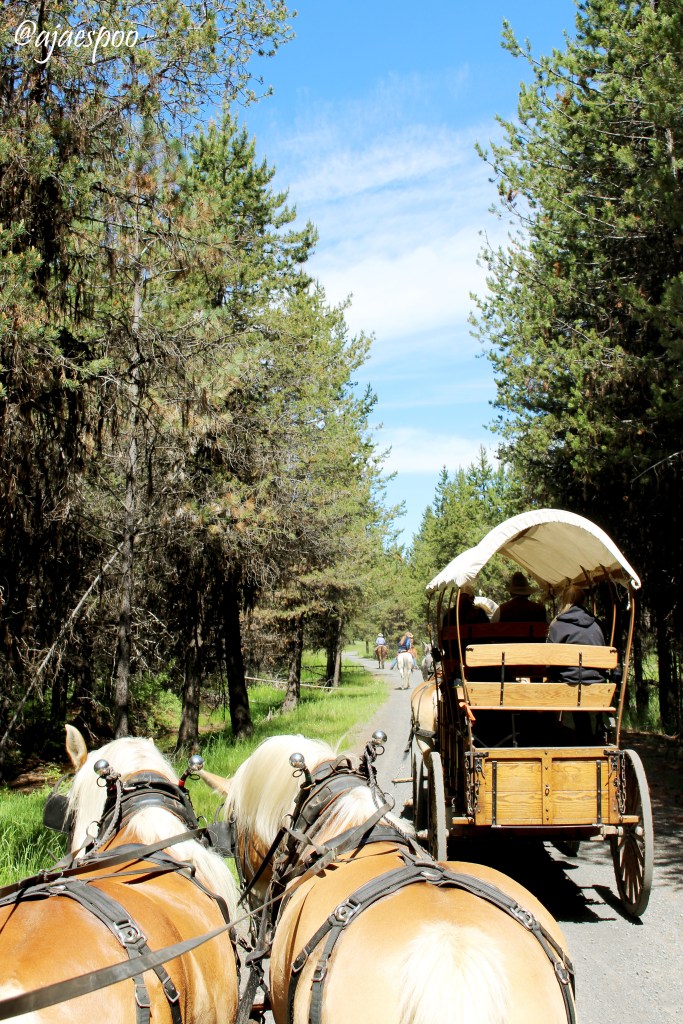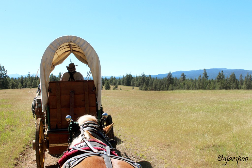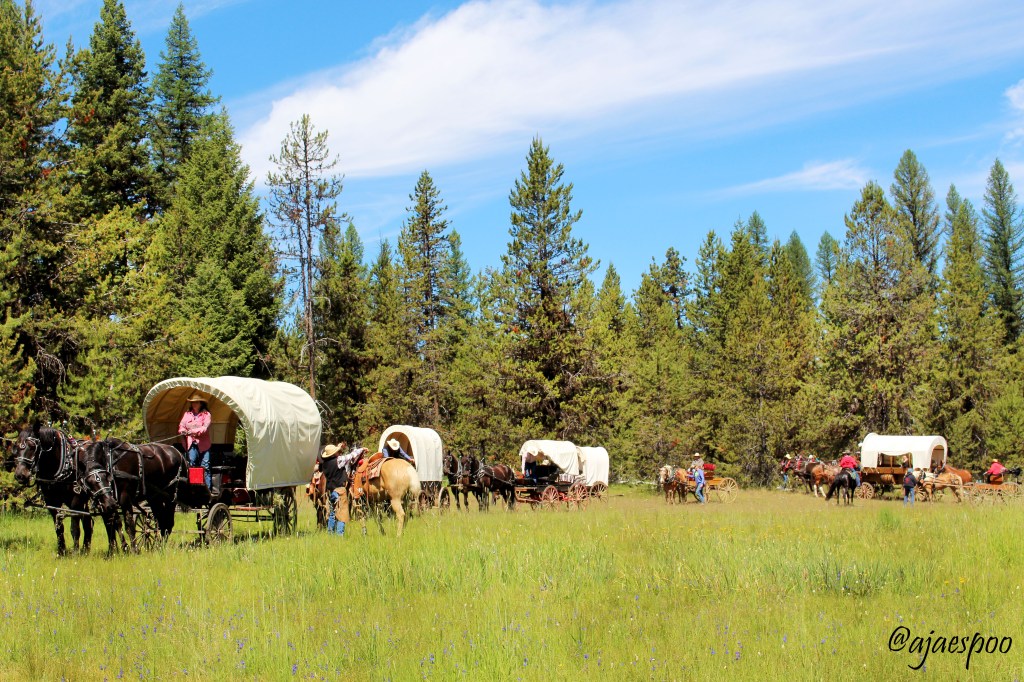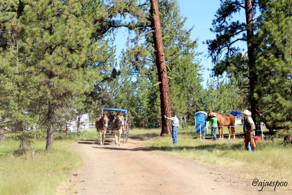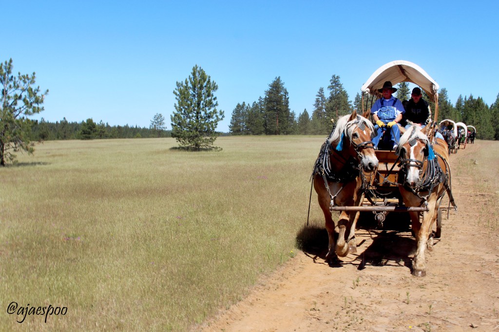Back in June when I was at home on vacation visiting my family in Oregon I had the opportunity to experience a few days at the annual Pendleton Round-Up Wagon Train. This week-long family event has been around since 1982 and is an opportunity for people to bring their horses and teams to experience a week in the beautiful Blue Mountains and recreate the wagon train experience that the pioneers had on the Oregon Trail. This is the second year that my parents have been the event’s official caterer. While I was there I was able to tag along on the morning route for two days before heading back to camp with my dad who met the wagons and riders out on the trail for lunch. This is an incredibly unique, fun event filled with history, beautiful animals and salt of the earth people.
