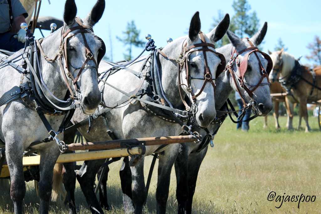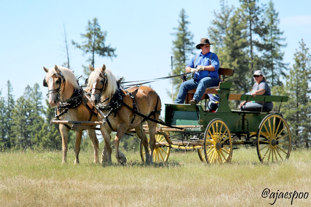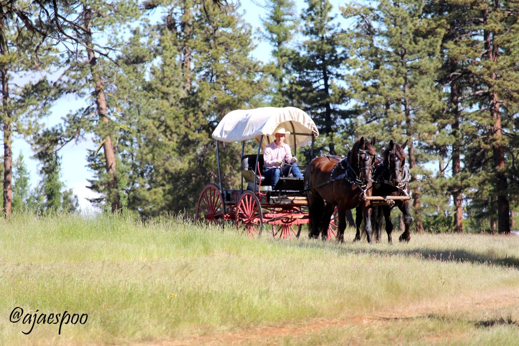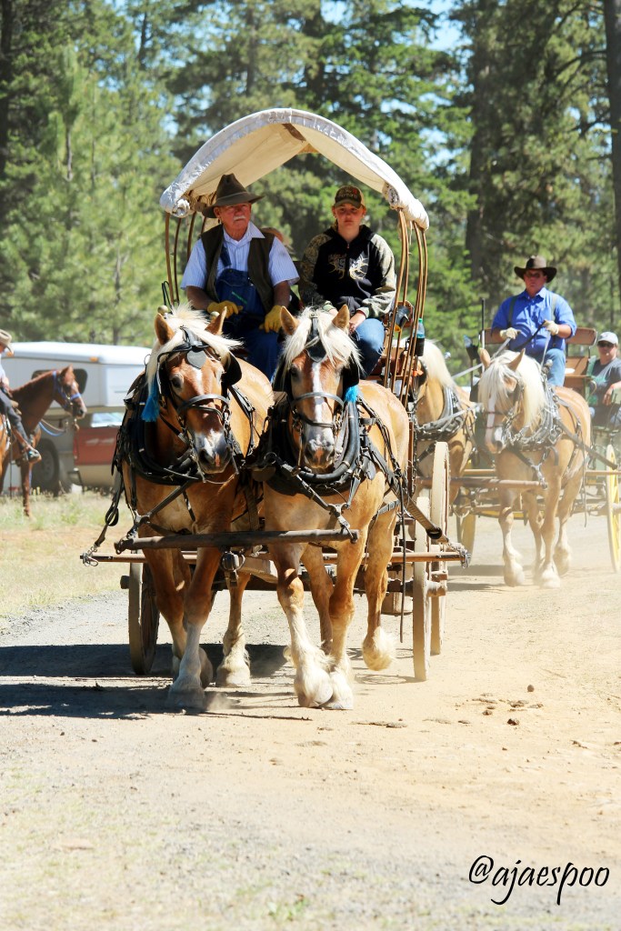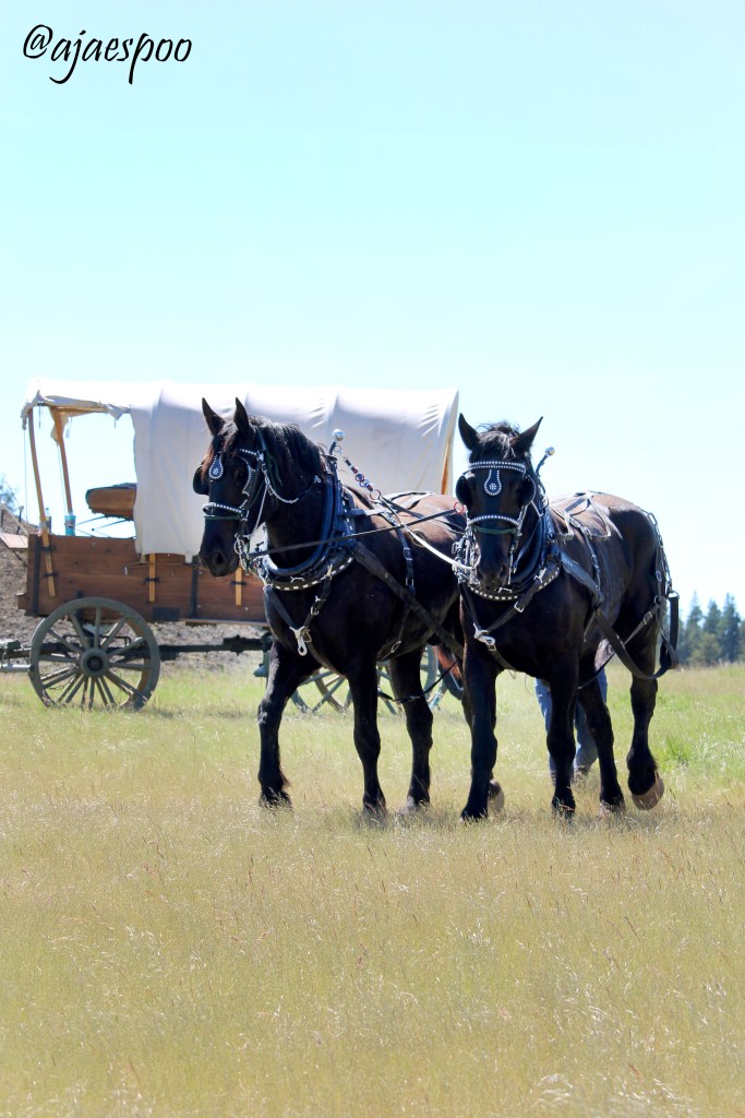 Back in June when I was at home on vacation visiting my family in Oregon I had the opportunity to experience a few days at the annual Pendleton Round-Up Wagon Train. This week-long family event has been around since 1982 and is an opportunity for people to bring their horses and teams to experience a week in the beautiful Blue Mountains and recreate the wagon train experience that the pioneers had on the Oregon Trail. This is the second year that my parents have been the event’s official caterer. While I was there I was able to tag along on the morning route for two days before heading back to camp with my dad who met the wagons and riders out on the trail for lunch. This is an incredibly unique, fun event filled with history, beautiful animals and salt of the earth people.