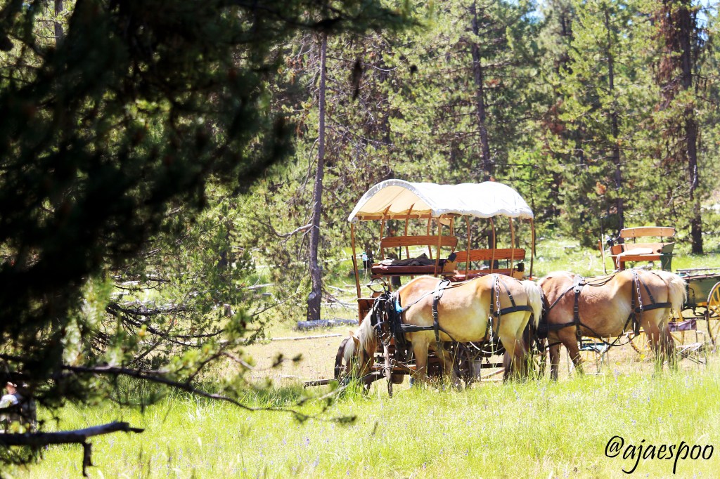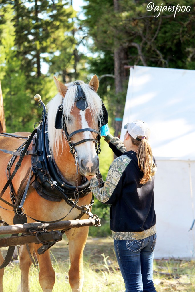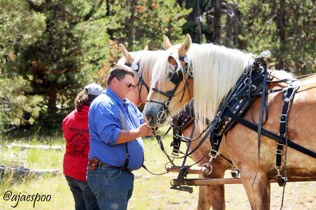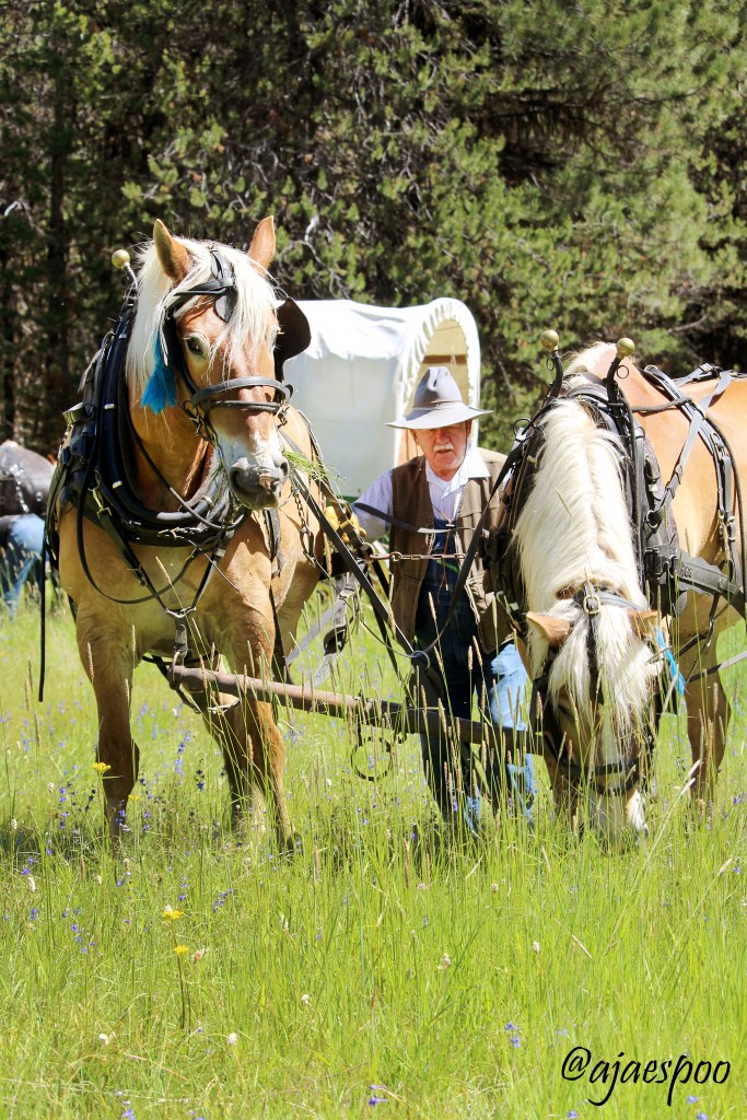 Back in June when I was at home on vacation visiting my family in Oregon I had the opportunity to experience a few days at the annual Pendleton Round-Up Wagon Train. This week-long family event has been around since 1982 and is an opportunity for people to bring their horses and teams to experience a week in the beautiful Blue Mountains and recreate the wagon train experience that the pioneers had on the Oregon Trail. This is the second year that my parents have been the event’s official caterer. While I was there I was able to tag along on the morning route for two days before heading back to camp with my dad who met the wagons and riders out on the trail for lunch. This is an incredibly unique, fun event filled with history, beautiful animals and salt of the earth people.