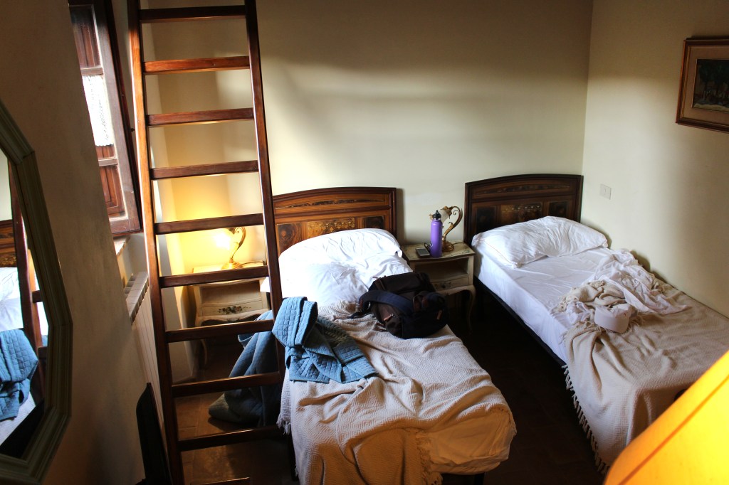 We took quite a few pictures of our rooms in most of the places we stayed, but I didn’t know I really wanted to fill my posts up with those. This room below is where my Mom and I stayed. The ladder leads up to a small loft that had another bed. In every place we stayed all of our rooms were a little different from each other instead of being really cookie cutter like a traditional hotel.