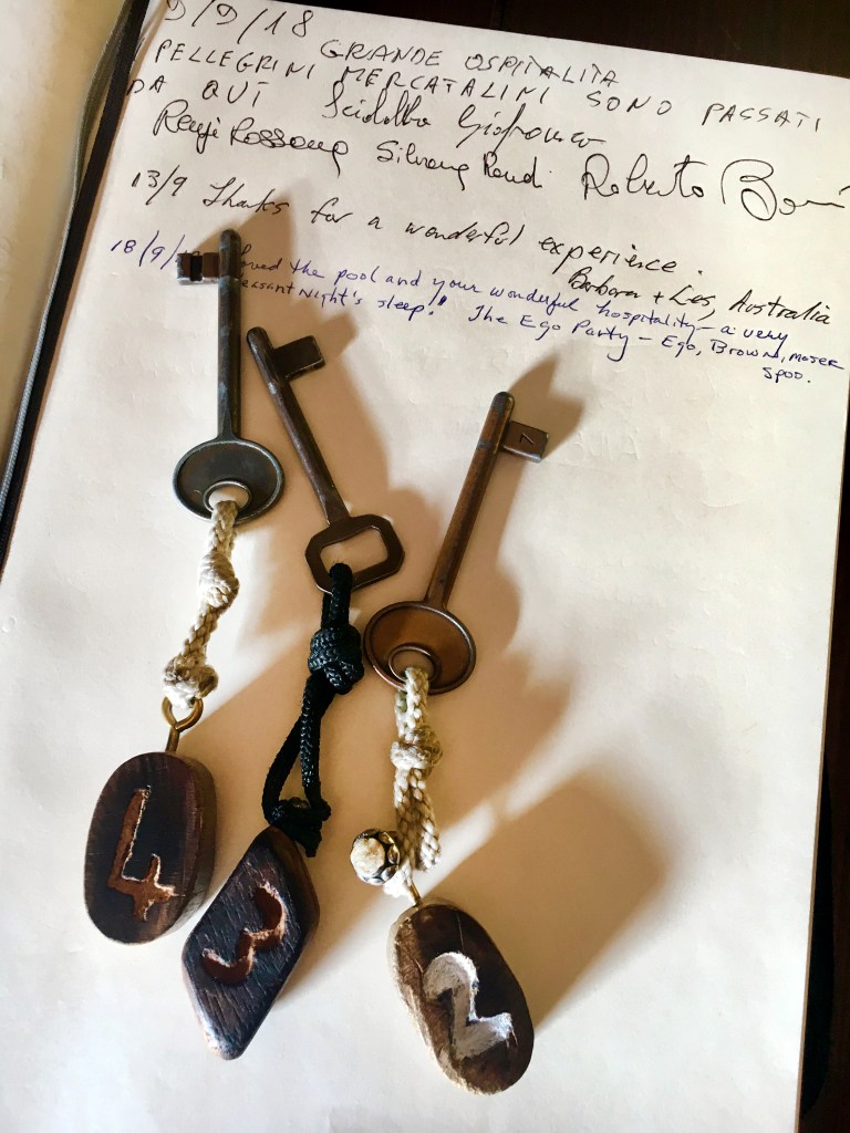 Our accommodations in Poggio Moiano were one of two that I didn’t care for at all. These were small studio apartments (except I think the one my grandparents stayed in had a few rooms) and functioned more like an AirBnB. They did have kitchenettes which was nice, but they were just a bit strange overall and not very comfortable. However, ironically, the dinner we had here was by far my favorite from the walk. As I mentioned in my summary post, all of our dinners and breakfasts were organized for us. It was prepared by the people who owned the apartments which were right next to their restaurant. We had a round of appetizers, multiple family-style entrees and a selection of desserts. If I remember correctly, nearly everything came from their extended family’s farm and garden, and it was all homemade. They didn’t very much English, but they had a family friend who did speak English serve as our host and shared about each dish as they brought it out. It was all amazing.