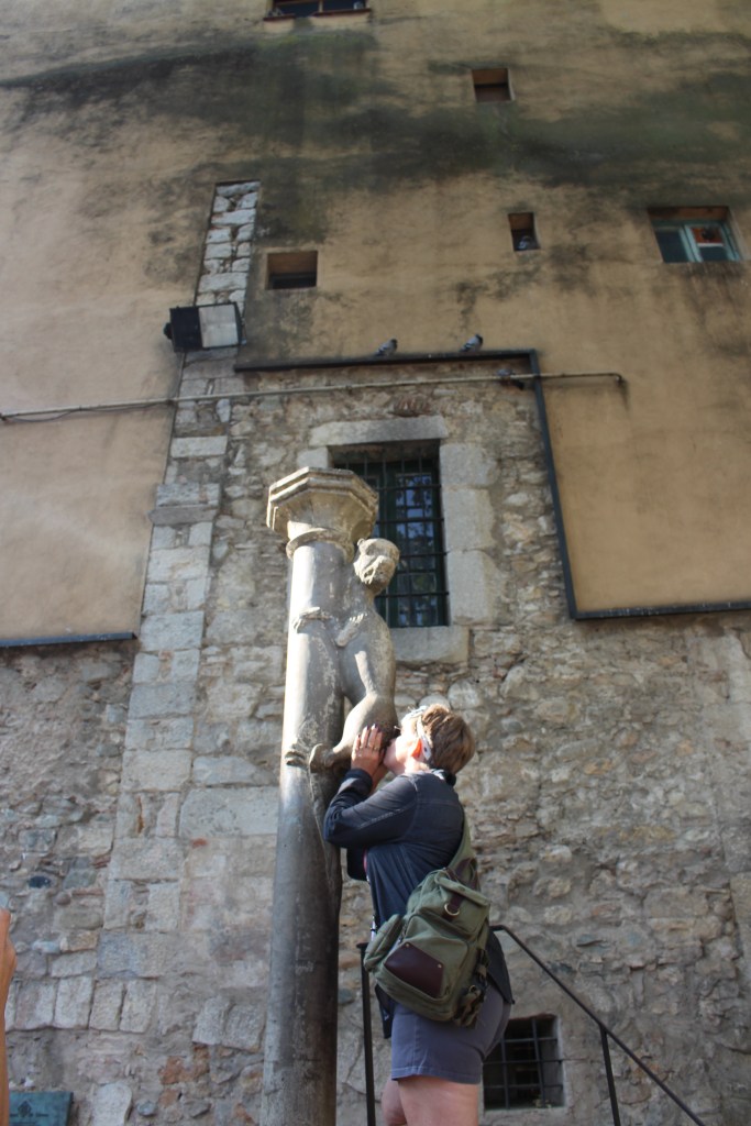 Right as you cross the river and into the historic part of the city, there is this pillar with a lioness at the top (if you ask me, it looks like a sloth). The legend is that if you visit Girona, you have to kiss the bottom if you want to visit again. No one who knows me should be surprised that I was not a fan of playing along, but Mom took one for the team.