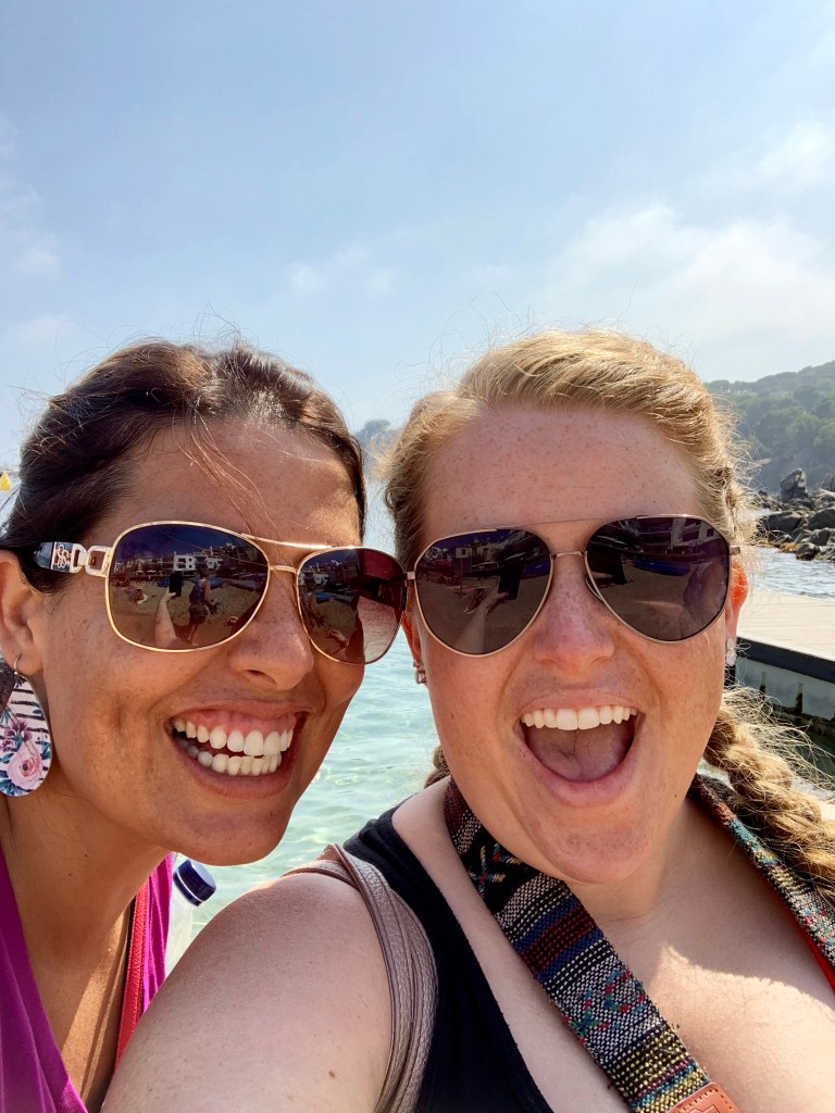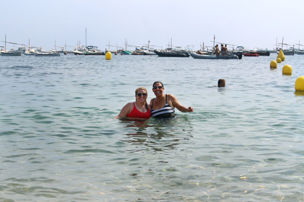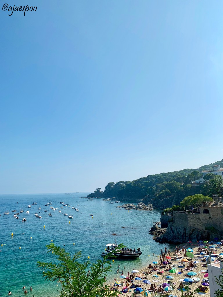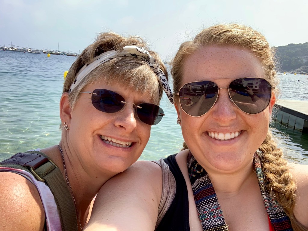 Next, we headed southeast to the coastal town of Calella de Palafrugell, which is still part of the Costa Brava region and was originally an ancient fishing village. First we ate at the Restaurante la Vela and then were given a few hours of free time to explore on our own. We chose to spend our time on the beach and eating gelato. Mom and I are mountain girls at heart, but Jodi grew up in Florida and is a true beach girl, so I know this part was one of her favorite parts of the whole trip. From what I read about the area both before and after our visit, many agree that among the various destinations on the Costa Brava, this is the one most frequented by Spaniards on vacation vs. tourists. Regardless, after a busy and heavy walking morning, it was nice to relax a bit in the sun, and the water was pretty warm and clear!